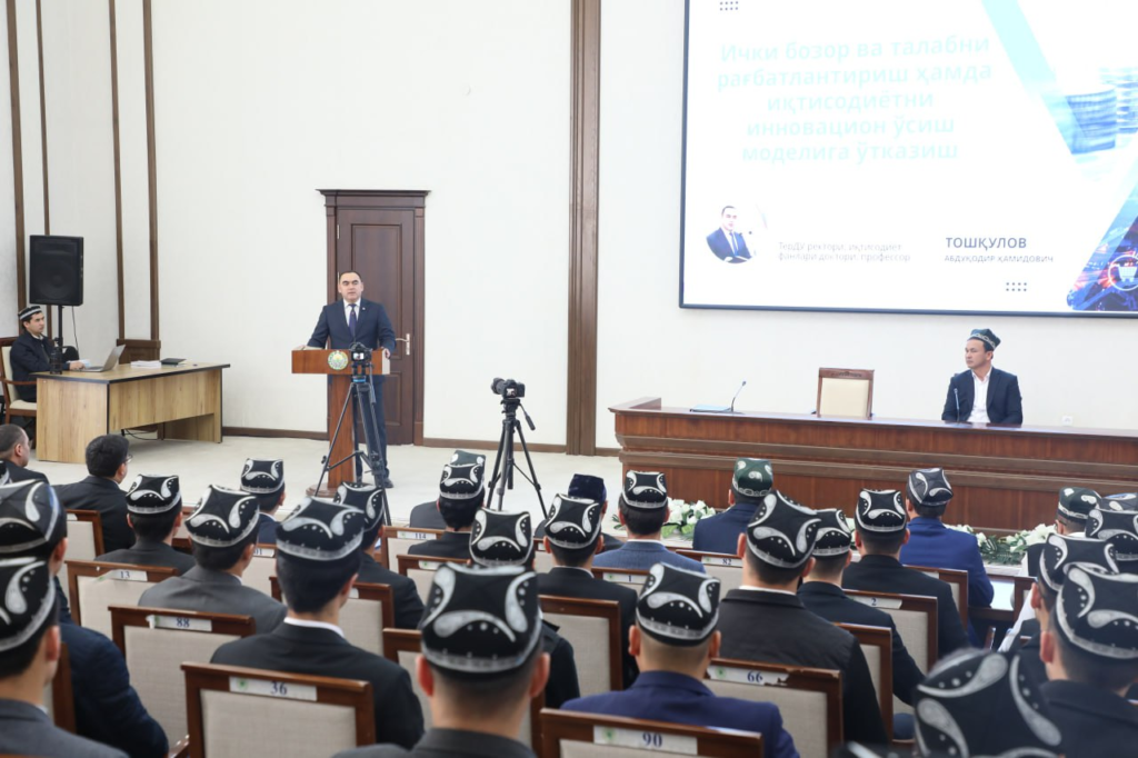 🧊Бугун Имом Термизий халқаро илмий-тадқиқот марказида “Миллий юксалишнинг Янги Ўзбекистон модели” махсус курс дастури доирасида “Иқтисодиётни технологик ва инновацион ўсиш моделига ўтказиш” мавзусида маънавий-маърифий тадбир бўлиб ўтди.