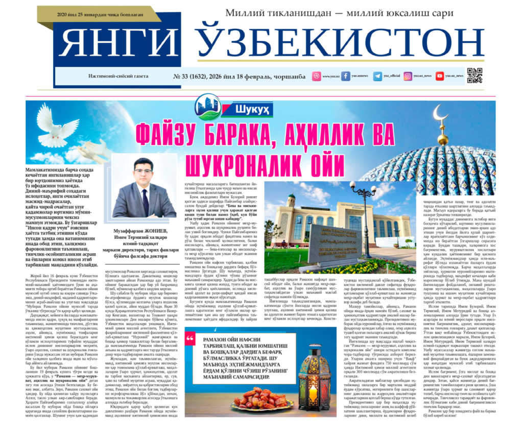 Жорий йил 16 февраль куни Ўзбекистон Республикаси Президенти томонидан ижтимоий-маънавий ҳаётимиздаги ўрни ва аҳамияти тобора ортиб бораётган Рамазон ойини муносиб кутиб олиш ва юқори савияда ўтказиш, диний-маърифий, маданий қадриятларимизни асраб-авайлаш ва улуғлаш мақсадида “Муборак Рамазон ойини муносиб тарзда ўтказиш тўғрисида”ги қарор қабул қилинди. Дарҳақиқат, кейинги йилларда мамлакатимизда инсон қадри, ҳуқуқ ва манфаатларини таъминлаш, жамиятимизда тинчлик, дўстлик ва ҳамжиҳатлик муҳитини мустаҳкамлаш, аҳоли, айниқса, эҳтиёжманд тоифаларни ижтимоий ҳимоя қилиш борасидаги кенг кўламли ислоҳотларимиз туфайли муқаддас ислом динининг инсонпарварлик моҳияти, ўзаро аҳиллик, саховат ва шукроналик ғояларини ўзида мужассам этган муборак Рамазон ойи халқимиз қалбига янада яқин ва мўътабар айёмга айланмоқда. Бу йил муборак Рамазон ойининг бошланиши 19 февраль кунига тўғри келди ва ҳужжатга кўра, у “Рамазон — меҳр-мурувват, аҳиллик ва шукроналик ойи” деган эзгу ғоя асосида ўтиши белгиланди. Бу бежиз эмас, албатта. Зеро, Рамазон саховат ойи ҳамдир. Бу ойда қилинган хайру эҳсонларга Аллоҳ таоло улкан ажр-савобларни беради. Ҳазрати Пайғамбаримиз соллаллоҳу алайҳи васаллам бу муборак ойда бошқа ойларга қараганда янада сахийлик фазилатларини намоён қилганлар. Шунинг учун ҳам қадимдан мусулмонлар Рамазон кирганда саховатлироқ бўлишга одатланган. Давлатманд кишилар закотларини айнан Рамазонда адо этган. Бу ойнинг баракасидан ҳар бир уй баҳраманд бўлиб, мўминлар қалбига шодлик кирган. Шу сабабли бу муборак ойда ҳар биримиз ёнатрофимизда ёрдамга муҳтож кишилар бўлса, қўлимиздан келганча уларга яхшилик қилиб қолсак, айни муддао бўлади. Яқин 30 кунда Қорақалпоғистон Республикаси Вазирлар Кенгаши, вилоятлар ва Тошкент шаҳри ҳокимликлари Дин ишлари бўйича қўмита, Ўзбекистон маҳаллалари уюшмаси, Ижтимоий ҳимоя миллий агентлиги, Ўзбекистон фахрийларининг ижтимоий фаолиятини қўллаб-қувватлаш “Нуроний” жамғармаси ва бошқа ҳамкор ташкилотлар билан биргаликда мамлакатимизда Рамазон ойини миллий анъана ва қадриятларга мос тарзда ўтказишга доир чора-тадбирларни амалга оширади. Жумладан, кам таъминланган, эҳтиёжманд, ижтимоий ҳимояга муҳтож инсонлар-ни ҳар томонлама қўллаб-қувватлаш, маҳаллаларни ўзаро ҳурмат, ҳамжиҳатлик, адолат ва тарбия масканига айлантириш, ер, сув,ҳаво ва табиий муҳитни асраш, муқаддас қадамжолар, зиёратгоҳ ва қабристонларни обод этиш, Рамазон ойи билан боғлиқ тадбирларни исрофгарчиликка йўл қўймасдан, ихчам, мазмунли ва тежамкорлик асосида ўтказишга алоҳида эътибор берилади. Юқоридаги қарор қабул қилинган кун давлатимиз раҳбари Рамазон ойида эҳтиёжманд аҳолининг ижтимоий ҳимоясини янада кучайтириш масалаларига бағишланган йиғилиш ўтказганида ҳам чуқур маъно ва юксак инсонийлик фазилатлари мужассам.