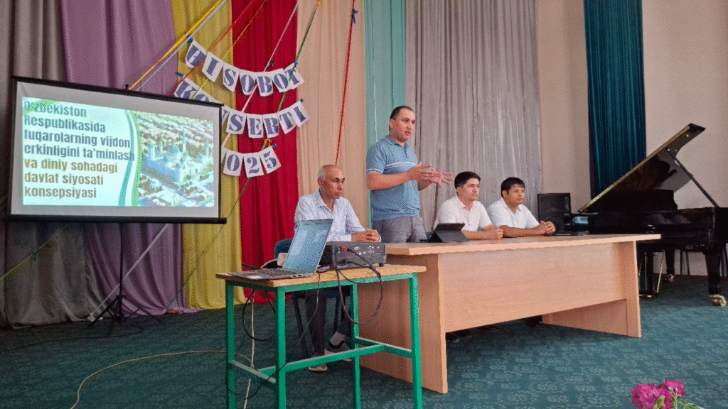 🔰Uzun tumanida “Fuqarolarning vijdon erkinligini taʼminlash va diniy sohadagi davlat siyosati konsepsiyasi” mavzusida targ‘ibot tadbir bo‘lib o‘tdi.