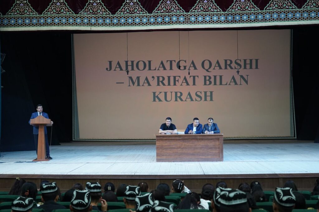 🔰 Bugun Termiz shahridagi San’at saroyida Termiz davlat universiteti talabalari uchun “Jaholatga qarshi – ma’rifat bilan kurash!” hamda “Inson qadri va huquqlarining ustuvorligi – taraqqiyot poydevori” mavzularida ma’naviy-ma’rifiy uchrashuv tashkil etildi.