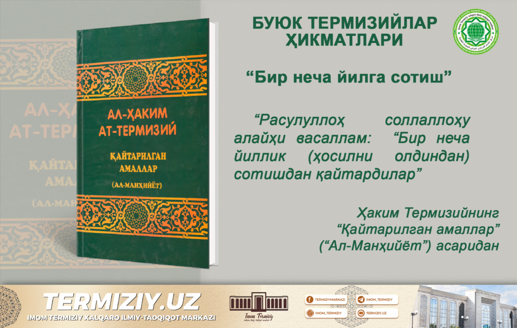 ✍️Hakim Termiziyning «Qaytarilgan amallar» («Al-Manhiyyot») asaridan