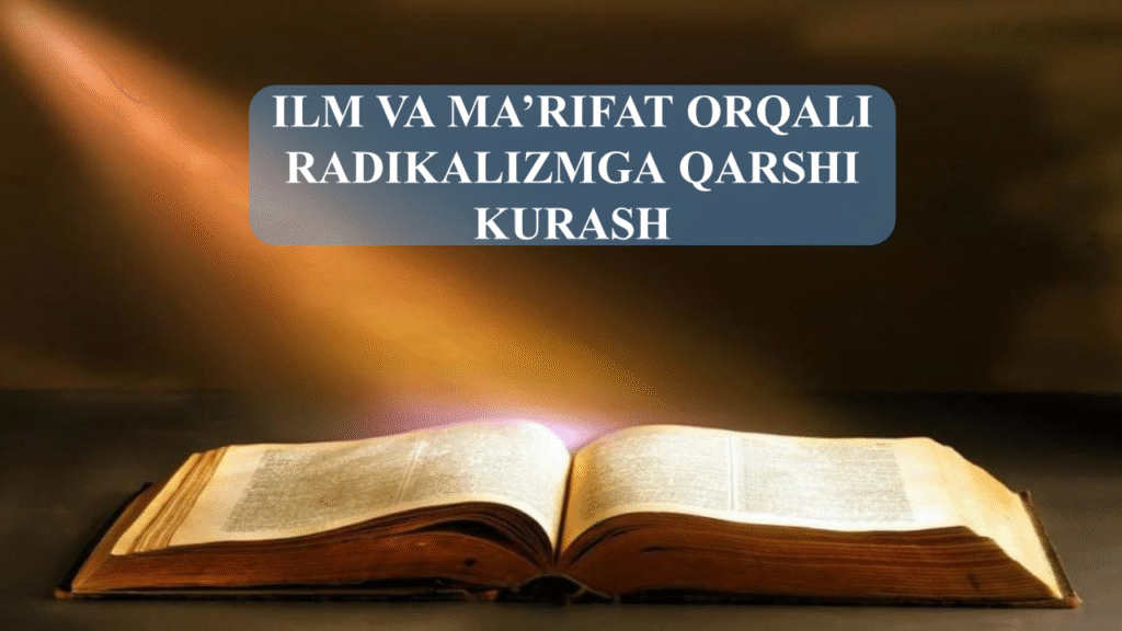 Zamonaviy dunyoda radikalizm va ekstremizm insoniyat tinchligiga, jamiyat barqarorligiga va millatlararo totuvlikka jiddiy xavf tug‘dirayotgan hodisalardir. Bu tahdidlar, ayniqsa, yoshlar ongiga turli yo‘llar bilan singdirilmoqda. Shuning uchun radikalizmga qarshi kurashda kuch ishlatish yoki ma’muriy choralar emas, balki ilm va ma’rifat asosidagi yondashuv eng samarali vosita sifatida qaraladi. Chunki jaholat ildiz otgan joyda ekstremizm tez yoyiladi, ma’rifat esa inson tafakkurini yoritadi va uni bu xatarli g‘oyalardan himoya qiladi.