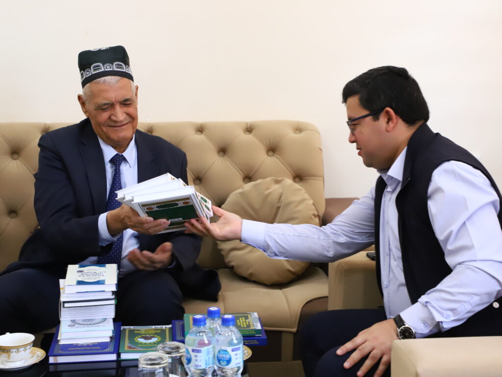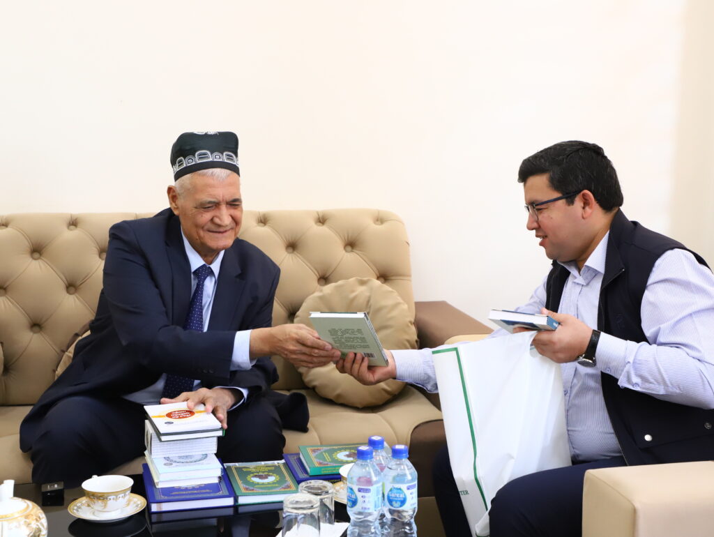 ✅Uchrashuv davomida professor Saypulla Tursunov Markaz katta ilmiy xodimi Jo‘rabek Cho‘tmatov bilan hamkorlikda nashr etgan “Termiziylar hayoti va ijodi: diniy va dunyoviy maslaklari” hamda “Hadis ilmi asoschilaridan Imom Termiziy va Termiziy allomalar” nomli kitoblar haqida ilmiy-ma’rifiy suhbat o‘tkazildi. Suhbat chog‘ida mazkur asarlarning ilmiy-amaliy ahamiyati, ulardagi manbalar tahlili, xalqimiz va yoshlar ta’lim-tarbiyasidagi o‘rni hamda Termiziylar ilmiy merosini o‘rganishdagi yangi yondashuvlar haqida fikr almashildi.
